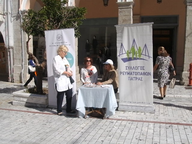 Με την ευκαιρία της Παγκόσμιας Ημέρας Αρθρίτιδας, έγιναν διανομές εντύπων σε Αθήνα, Θεσσαλονίκη, Πάτρα και Ηράκλειο σε συνεργασία με τους συλλόγους ασθενών.